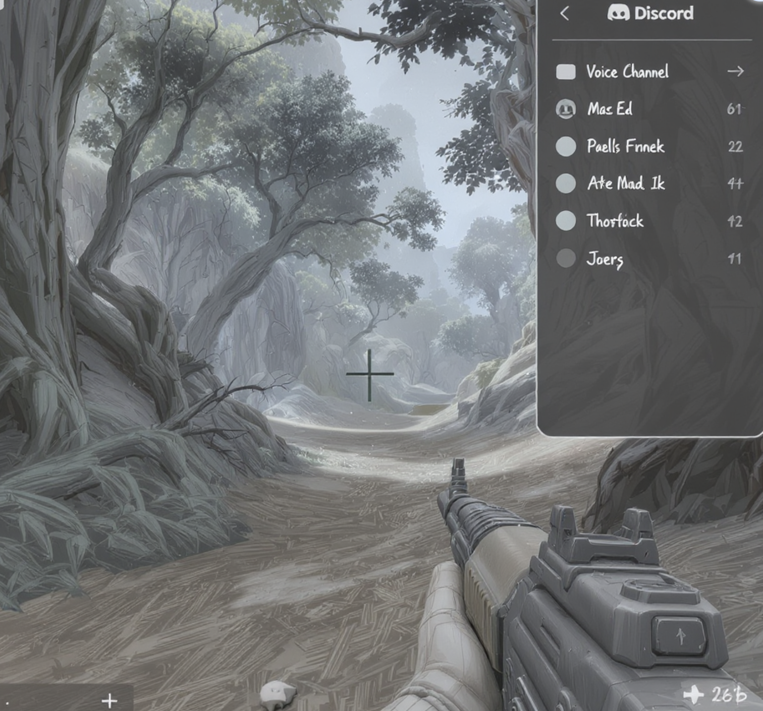디스코드의 '게임 오버레이'는, 게임을 전체 화면으로 즐기면서도 누가 말하고 있는지, 누가 채널에 들어왔는지를 게임 화면 위에 반투명하게 띄워주는 기능입니다. 이는 마치 자동차 앞 유리에 속도나 경로를 보여주는 헤드업 디스플레이(HUD)와 같습니다.