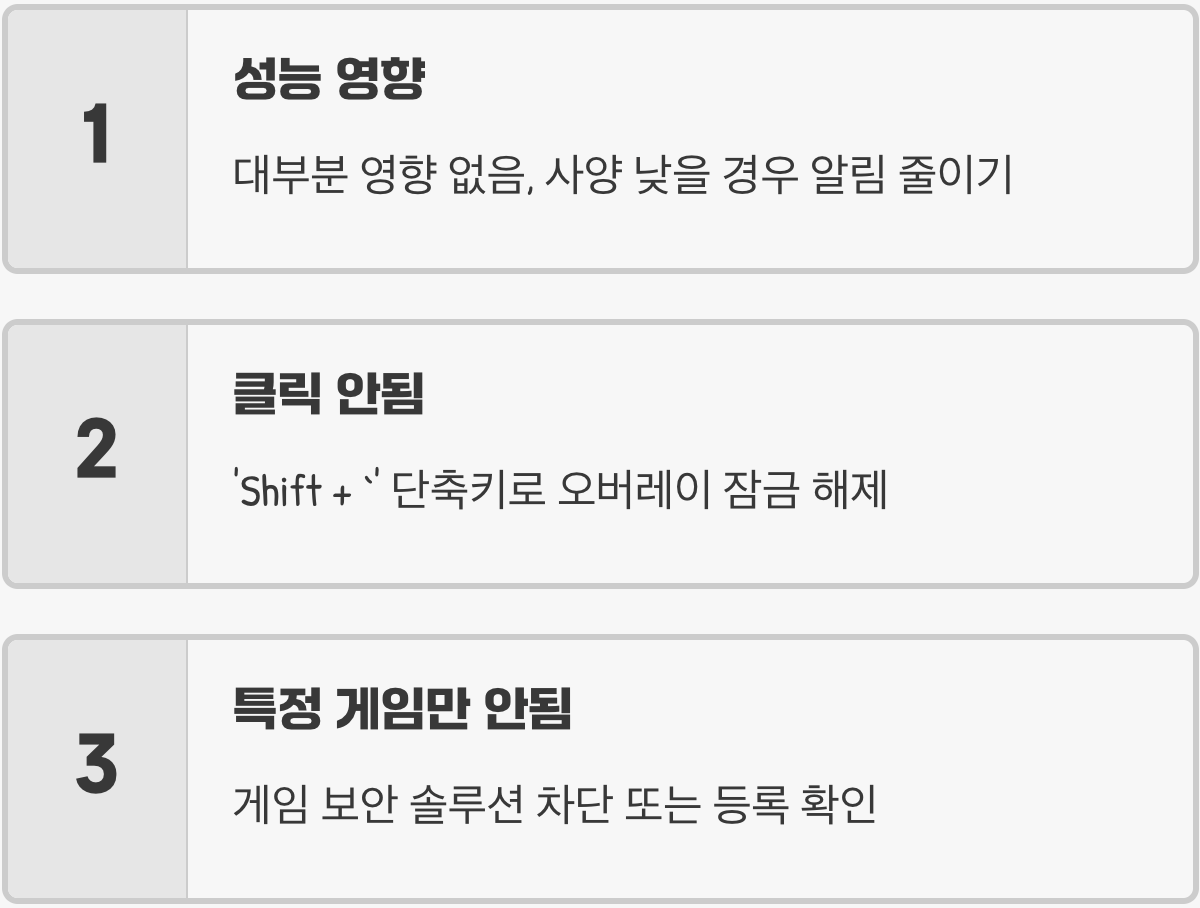 오버레이가 안 보일 때, '이것'부터 확인하세요