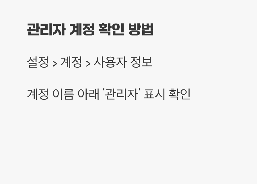 위의 모든 과정을 거쳤는데도 여전히 접근이 안 된다면, 현재 내가 사용하고 있는 계정이 ‘관리자(Administrator)’ 권한을 가지고 있는지 확인해 볼 필요가 있습니다. 일반 ‘표준 사용자’ 계정은 시스템의 중요한 설정을 변경하는 데 제약이 있을 수 있기 때문입니다.