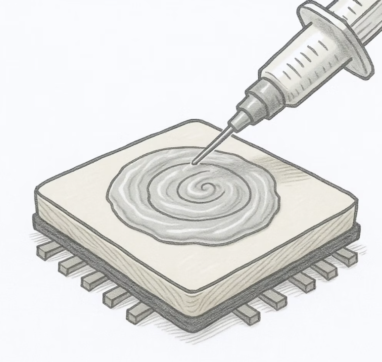 먼지를 모두 청소했는데도 온도가 여전히 높다면, 다음으로 의심해야 할 것은 바로 ‘서멀구리스(Thermal Grease)’입니다. 서멀구리스는 CPU와 쿨러 사이에 얇게 발라져, CPU에서 발생하는 열이 쿨러로 빈틈없이 잘 전달되도록 돕는 ‘열 전도 물질’입니다.