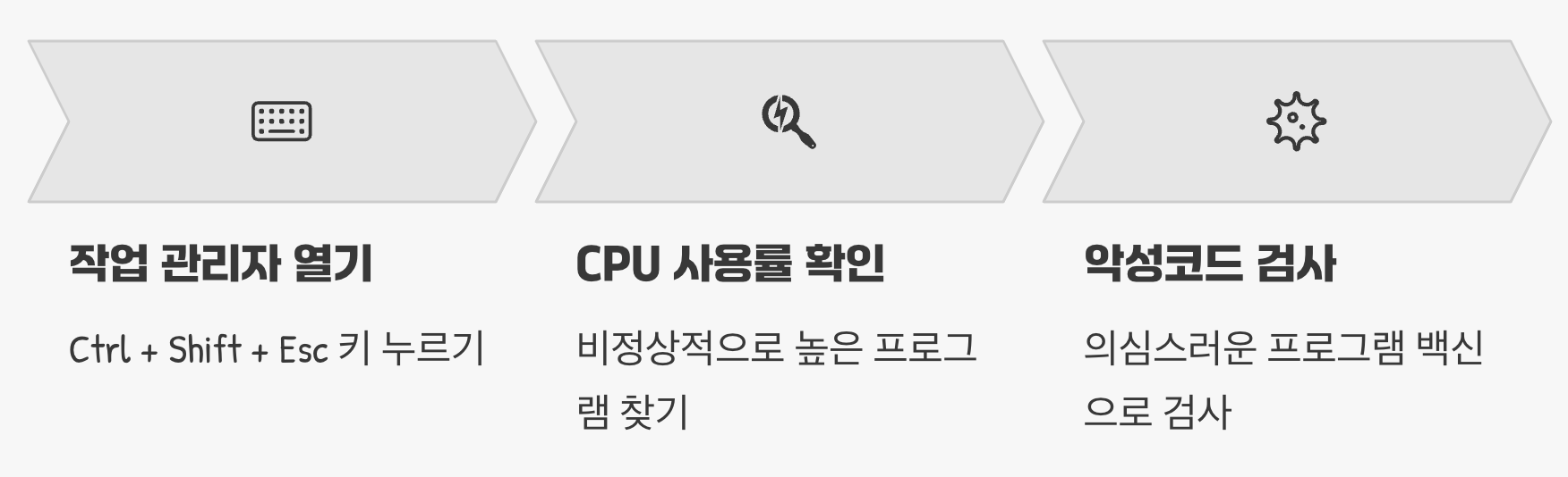 하드웨어에 아무런 문제가 없는데도 온도가 높다면, 이제는 소프트웨어를 점검해 볼 차례입니다. 나도 모르는 사이에 설치된 악성코드나 불필요한 프로그램들이 백그라운드에서 끊임없이 CPU를 사용하게 만들어 과열을 유발할 수 있습니다. 이는 마치 자동차의 엑셀을 계속 밟고 있는 것과 같습니다.