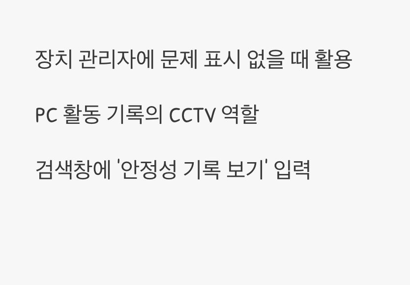 장치 관리자에는 아무런 느낌표가 없는데도, PC가 자꾸 멈추거나 블루스크린이 뜬다면 어떻게 해야 할까요? 이럴 때는 PC의 모든 활동 기록이 담겨있는 ‘안정성 모니터’라는 숨겨진 도구를 활용해 볼 수 있습니다. 이곳은 문제 발생 당시의 상황을 보여주는 CCTV와도 같습니다.