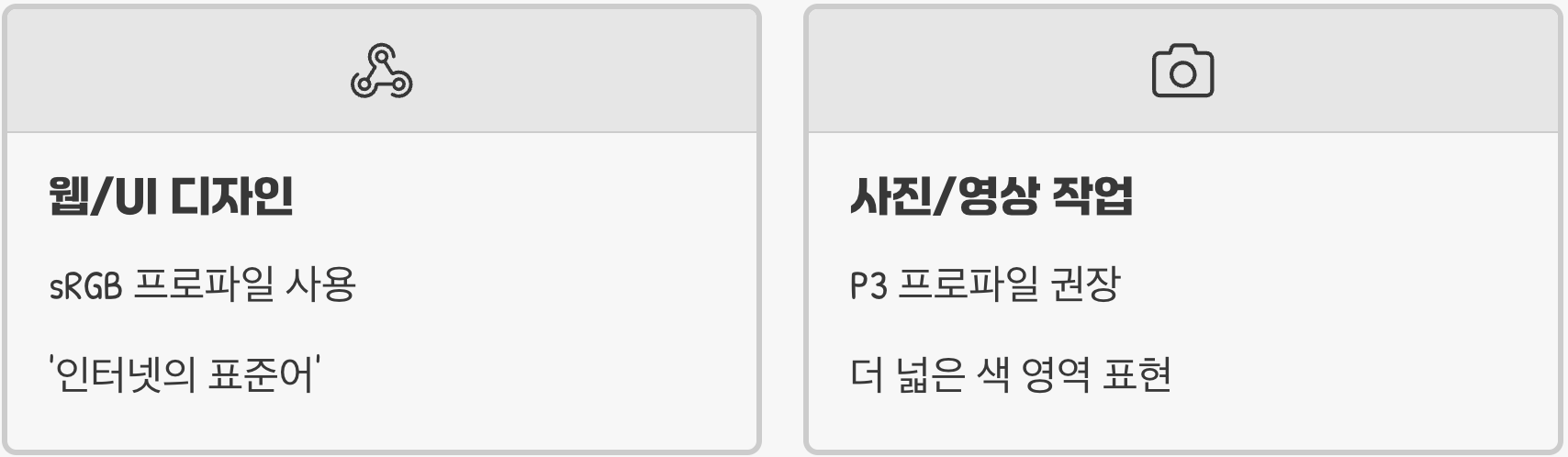 반면, 고화질 사진이나 영상 작업을 주로 한다면 sRGB보다 더 넓은 색 영역을 표현할 수 있는 'P3' 프로파일이 더 적합할 수 있습니다. 내가 작업한 결과물이 어떤 환경에서 주로 보여질지를 고려하여, 포토샵이나 일러스트레이터 같은 작업 프로그램의 색상 설정을 해당 프로파일에 맞춰주는 것이 최종 결과물의 왜곡을 막는 현명한 방법입니다.