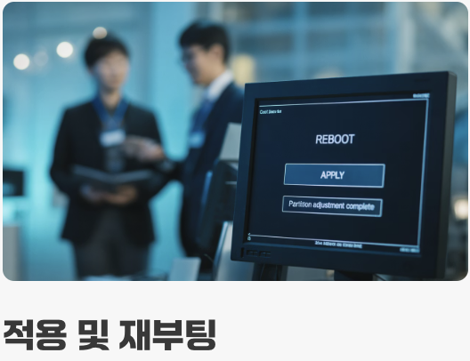 - 원하는 크기로 조절이 끝났다면 '적용(Apply)' 버튼을 누르고, 프로그램의 안내에 따라 재부팅하며 기다리기만 하면 됩니다.