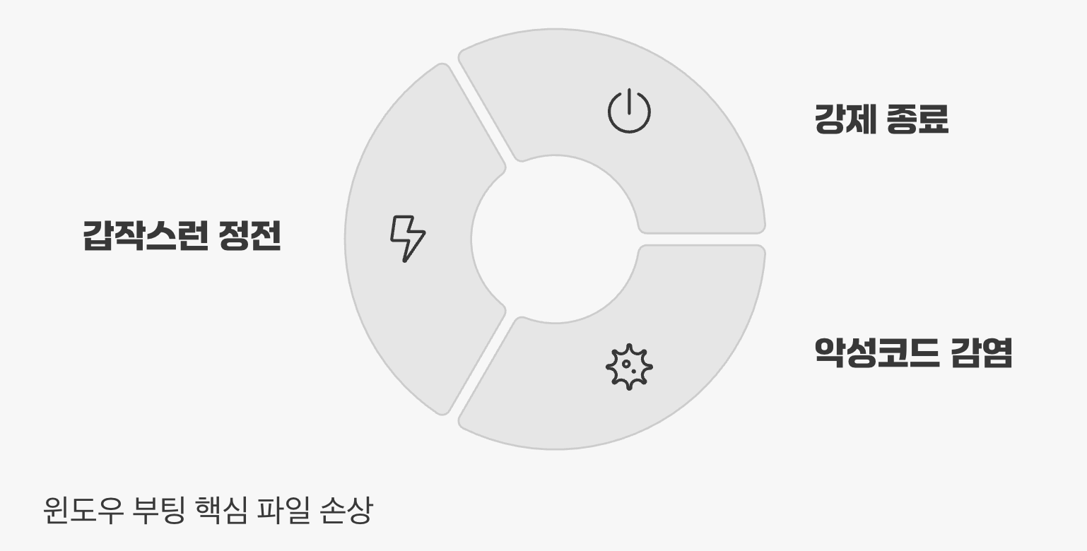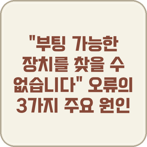 부팅 순서 오류, 디스크(SSD/HDD) 손상, 부트 섹터 손상 등 3가지 주요 원인을 사례별로 정리해 설명합니다.