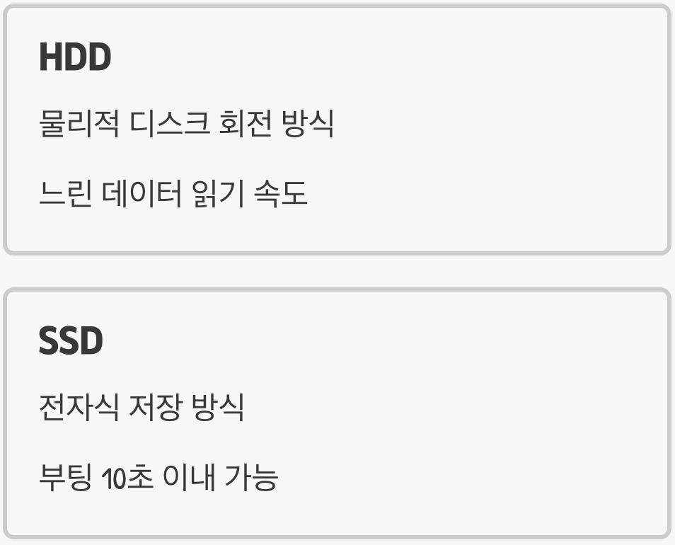 HDD는 LP판처럼 물리적인 디스크를 회전시켜 데이터를 읽는 방식이라 속도가 느릴 수밖에 없습니다. 이를 ‘솔리드 스테이트 드라이브(SSD)’로 교체하는 것은, 낡은 경차에 제트 엔진을 다는 것과 같은 극적인 변화를 가져옵니다. 윈도우를 SSD에 설치하는 것, 이것이야말로 부팅 속도를 10초 이내로 단축시키는 가장 확실하고 강력한 최종 해결책입니다.