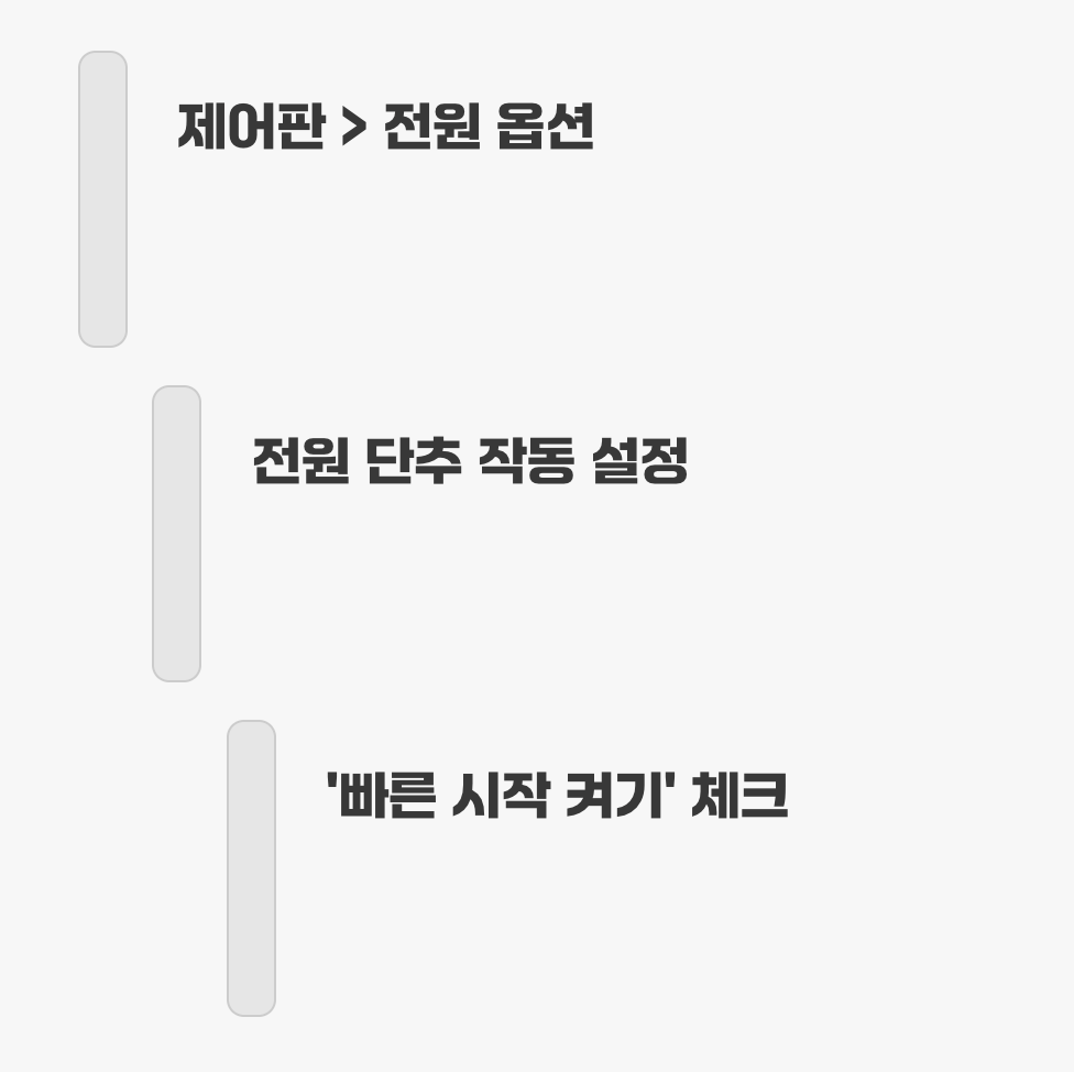 윈도우에는 부팅 속도를 극적으로 단축시켜 주는 ‘빠른 시작 켜기’라는 비밀 무기가 내장되어 있습니다. 이 기능은 PC를 완전히 종료하는 대신, 시스템 정보를 저장해 두었다가 다음 부팅 시 빠르게 불러오는 방식으로, 마치 동면 상태에서 깨어나는 것처럼 부팅 시간을 줄여줍니다.