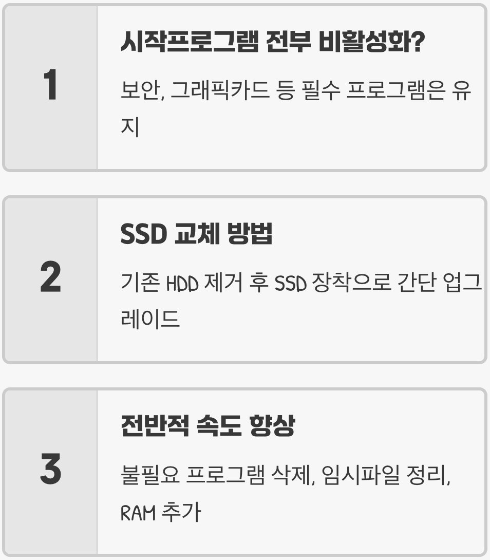 Q. 부팅 속도 말고 컴퓨터 자체의 속도를 빠르게 하는 방법도 있나요?