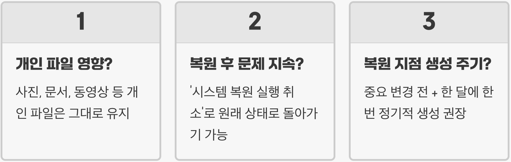 시스템 되돌리기, 이것만은 주의하세요