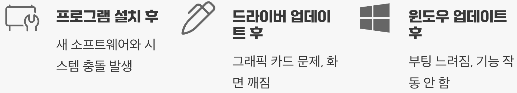 Q. 시스템 복원을 했는데 문제가 해결되지 않거나 오히려 더 나빠졌어요. 어떻게 하죠?