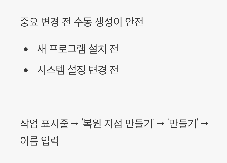 똑똑하게 복원 지점 만들기