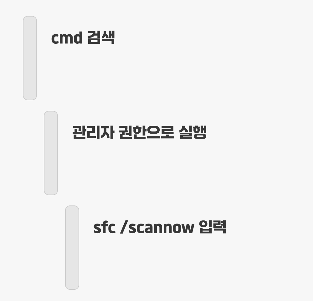 윈도우 시작 버튼 옆 검색창에 ‘cmd’라고 입력한 뒤, ‘명령 프롬프트’ 앱에 마우스 오른쪽 버튼을 클릭하여 ‘관리자 권한으로 실행’을 선택합니다. 검은색 명령창이 나타나면, sfc /scannow 라고 입력하고 엔터를 누르세요. 이 명령어는 윈도우의 모든 중요한 시스템 파일을 검사하고, 문제가 발견되면 건강한 파일로 자동 복원해 주는 강력한 자가 치유 기능입니다.
