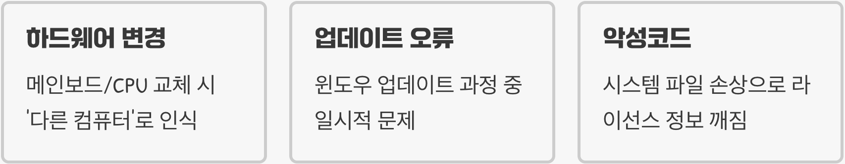 정상적으로 사용하던 윈도우 라이선스 인식이 갑자기 해제되는 데에는 몇 가지 대표적인 원인이 있습니다. 첫째, 컴퓨터의 핵심 부품인 메인보드나 CPU를 교체했을 때입니다. 윈도우는 컴퓨터의 주요 하드웨어 정보를 바탕으로 라이선스를 기억하는데, 가장 중요한 부품이 바뀌니 '다른 컴퓨터'로 인식하고 인증이 풀리는 것입니다.