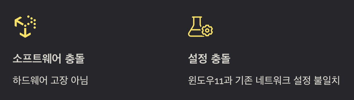 이것은 마치 이사를 갔는데, 새집 문에 예전 열쇠가 잘 맞지 않는 것과 같습니다. 열쇠(네트워크 드라이버)가 낡았거나, 문(윈도우 11)의 구조가 미묘하게 바뀌었기 때문이죠. 따라서 우리가 해야 할 일은 이 맞지 않는 부분을 조정하여, PC가 인터넷과 다시 원활하게 소통할 수 있도록 길을 터주는 것입니다.