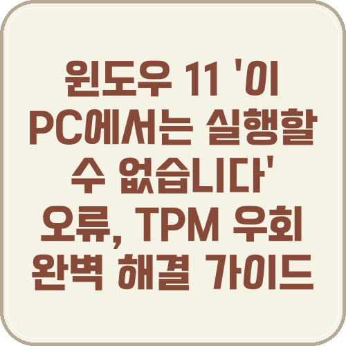 윈도우 11의 새로운 기능을 경험해보고 싶어 설레는 마음으로 설치를 시작했지만, ‘이 PC에서는 Windows 11을 실행할 수 없습니다’라는 차가운 메시지 앞에 좌절하셨나요? 분명 내 컴퓨터는 아직 쓸만한데, TPM 2.0이니 보안 부팅이니 하는 알 수 없는 단어들 때문에 설치가 막혀 답답하셨을 겁니다.