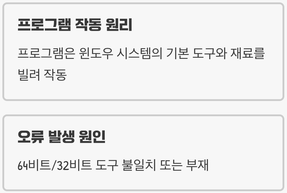 하지만 이 오류는 여러분의 컴퓨터에 심각한 고장이 생겼다는 신호가 아닙니다. 대부분의 경우, 프로그램을 실행하는 데 필요한 '부품' 몇 가지가 없거나 서로 맞지 않아 발생하는 문제입니다. 지금부터 전문가의 도움 없이도 이 답답한 문제를 해결하고 원하는 프로그램을 시원하게 실행할 수 있는 비법을 단계별로 알려드릴게요.
