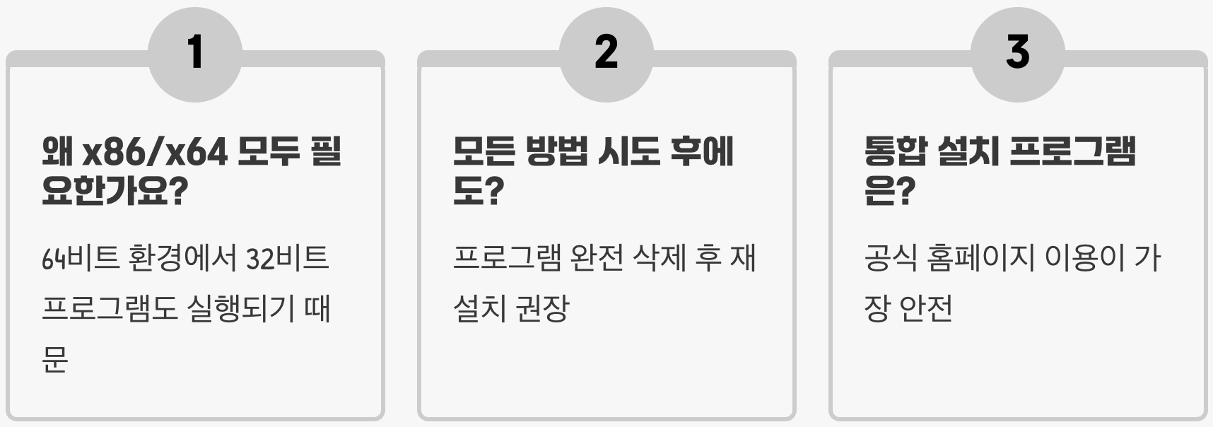 Q. Visual C++ 패키지는 왜 x86과 x64 버전을 모두 설치해야 하나요?