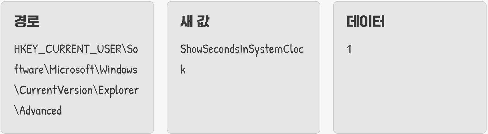 팁 4: 작업 표시줄 시계에 '초' 표시하기 (윈도우 11)