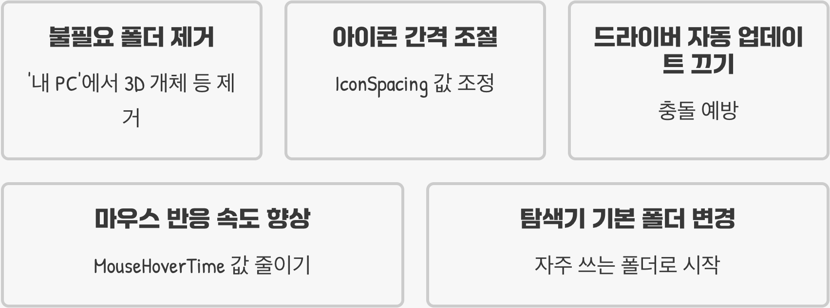 윈도우 최적화를 위해 꼭 시도해볼만한 레지스트리 수정 팁들을 실제 경로와 함께 총정리한 가이드입니다. - 레지스트리 정리로 성능 향상 완벽 가이드 - 둥오