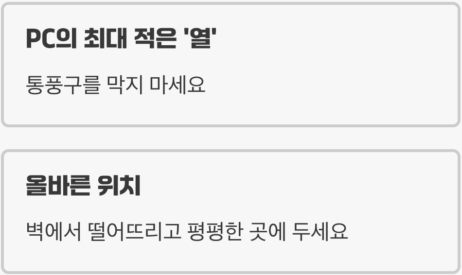 컴퓨터 부품들이 가장 싫어하는 것은 바로 '뜨거운 열'입니다. PC 내부에 열이 제대로 빠져나가지 못하고 쌓이면, 부품들의 성능이 저하되고 수명이 급격하게 단축됩니다. 이는 마치 두꺼운 외투를 입고 계속 달리는 것처럼, 기기를 지치게 만드는 가장 큰 원인입니다.